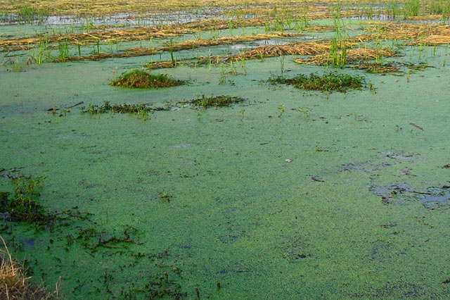 ทำการใส่ฟางแห้งสลับกับมูลสัตว์เป็นชั้นๆที่มุมบ่อ 4 ด้านหรือเป็นกองๆรอบบ่อและใส่น้าลึก 20 ซม. ทิ้งไว้ประมาณ 2-3 วันหรือเมื่อสีน้ำเปลี่ยนเป็นสีชาจึงเพิ่มระดับน้าเป็น 50-60 ซม. หลังจากนี้ประมาณ 3-5 วัน จึงนำลูกปลามาปล่อย